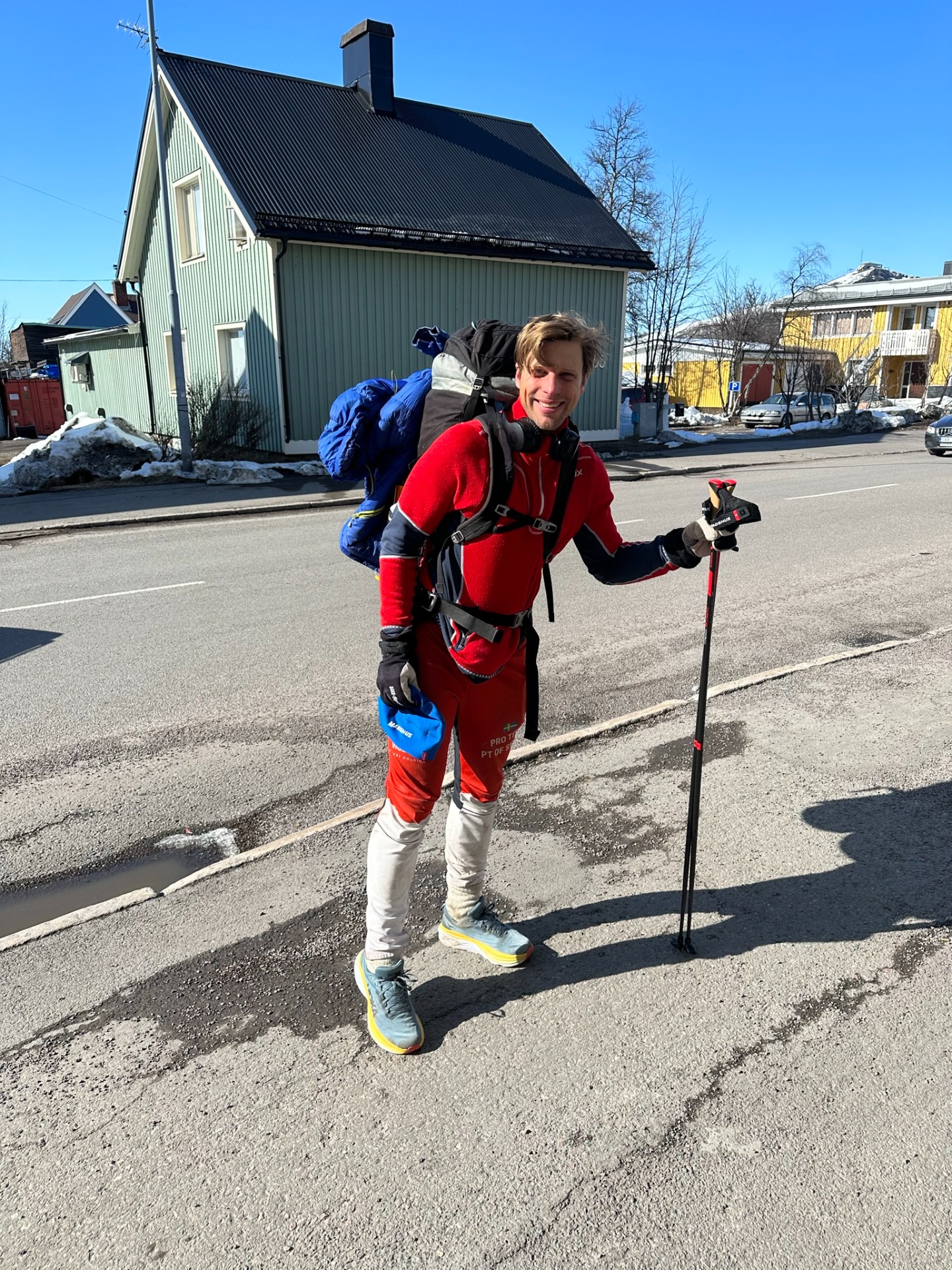 Jag kom aldrig till Nordkap, jag hade skidat i 2 månader och tagit mig norr om staden Kiruna långt ovanför polar cirkeln. Isarna hade blivit till vatten tidigt under resan, hade gått över isar som troligen nästan tinat bort dagen efter jag vandrat över dom. Tillslut fanns ingen Is kvar när jag skulle skida över en liten vinter flod. En skoterförare kom lyckligt förbi och erbjöd hämtning. Därefter tog jag en pouse i en vecka hos min kusin som levde i fjällvärlden innan jag bestämde mig att fortsätta från Kiruna till Narvik genom att springa 17 mil landsväg uppdelat på några dagar. Tog med mig nästan all packning utan skidor och pulka och började springa mot havet.